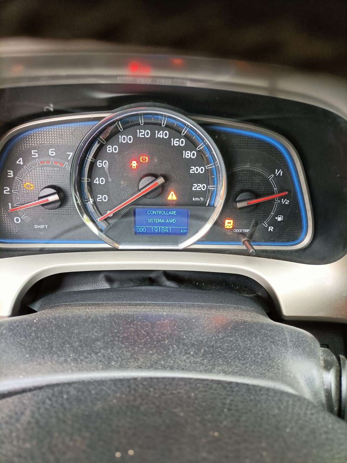 Senza apparente motivazione il cruscotto è diventato un albero di natale con avaria motore, triangolo e antislittamento e motore in recovery, sul display comparivano due differenti avvisi: DPF pieno necessaria manutenzione motore e controllare sistema AWD.